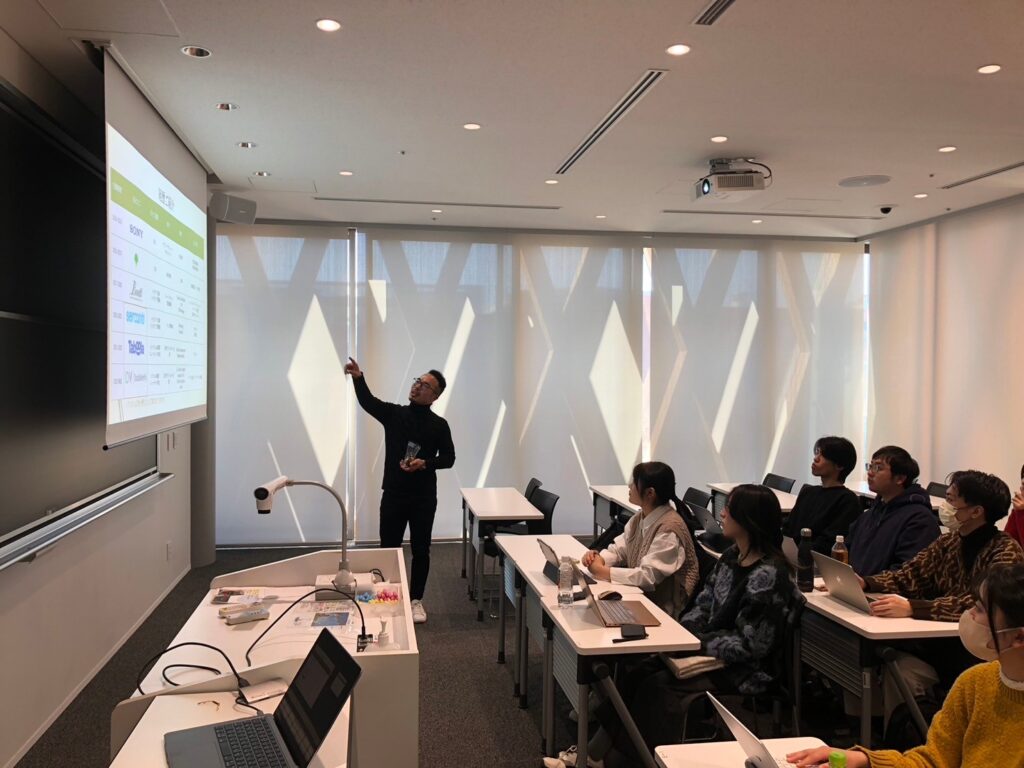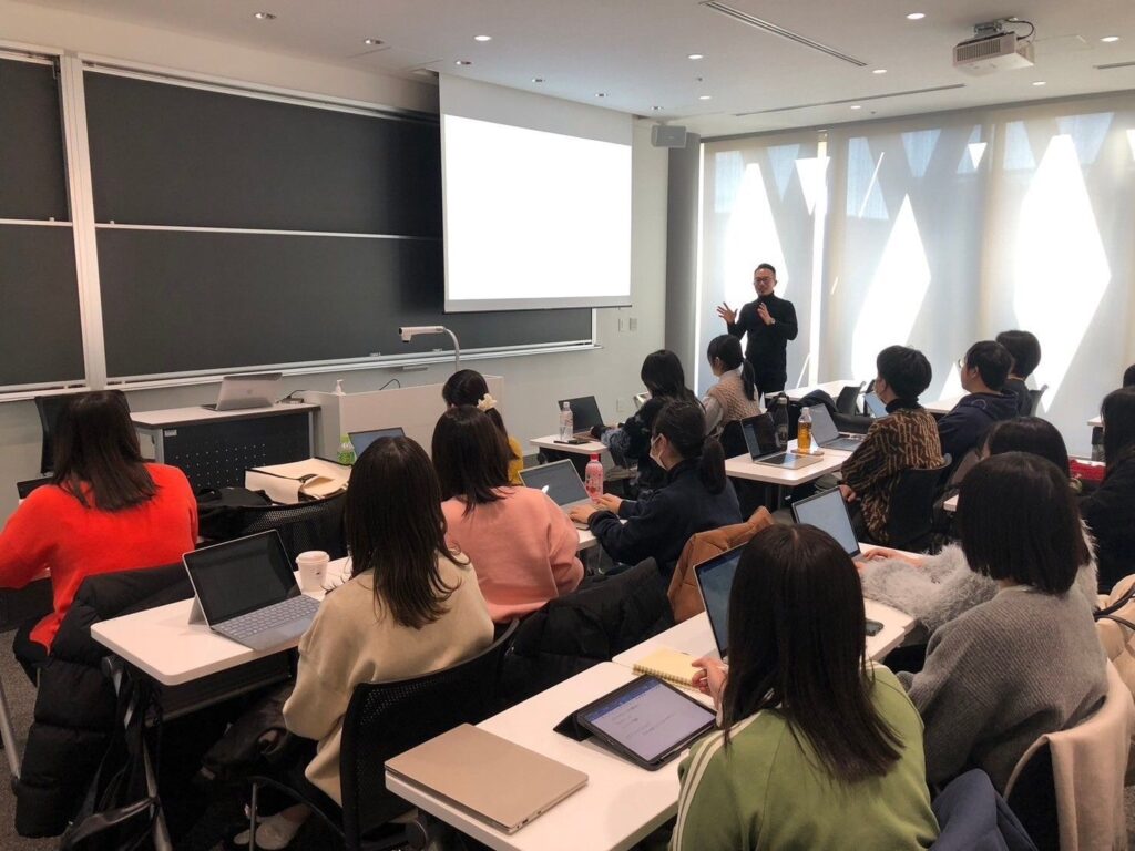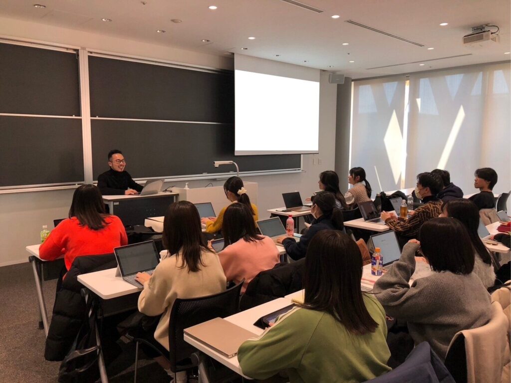 1月16日に近畿大学で行われた特別講義では、Akiが自身のキャリアを振り返り、「想像力」「行動力」「衝動」をどのように掛け合わせ、未来を切り拓いてきたのかを学生たちと共に考えました。講義では、「キャリア」や「人生の軸」をテーマに深い対話を重ね、新たな視点を得るきっかけを提供しました。私たちが大切にする「深いつながり」を基に、参加者一人一人の心に響くトークを心がけました。