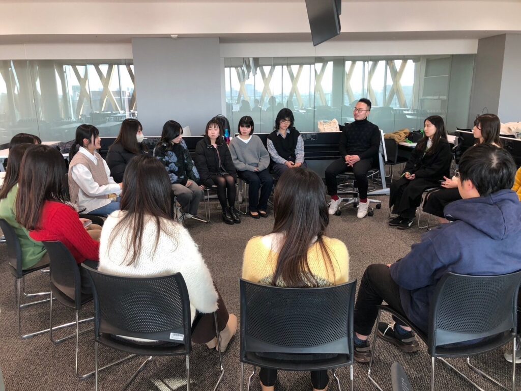 講演後は、座談会形式で学生たちと活発なディスカッションを行いました。キャリア選択、国際的な仕事の経験、文化適応について、学生たちは鋭い質問を投げかけ、深い対話が生まれました。また、イタリアでの生活や食文化、仕事とプライベートのバランス、人間関係の大切さについても意見を交わし、視点を広げる機会となりました。